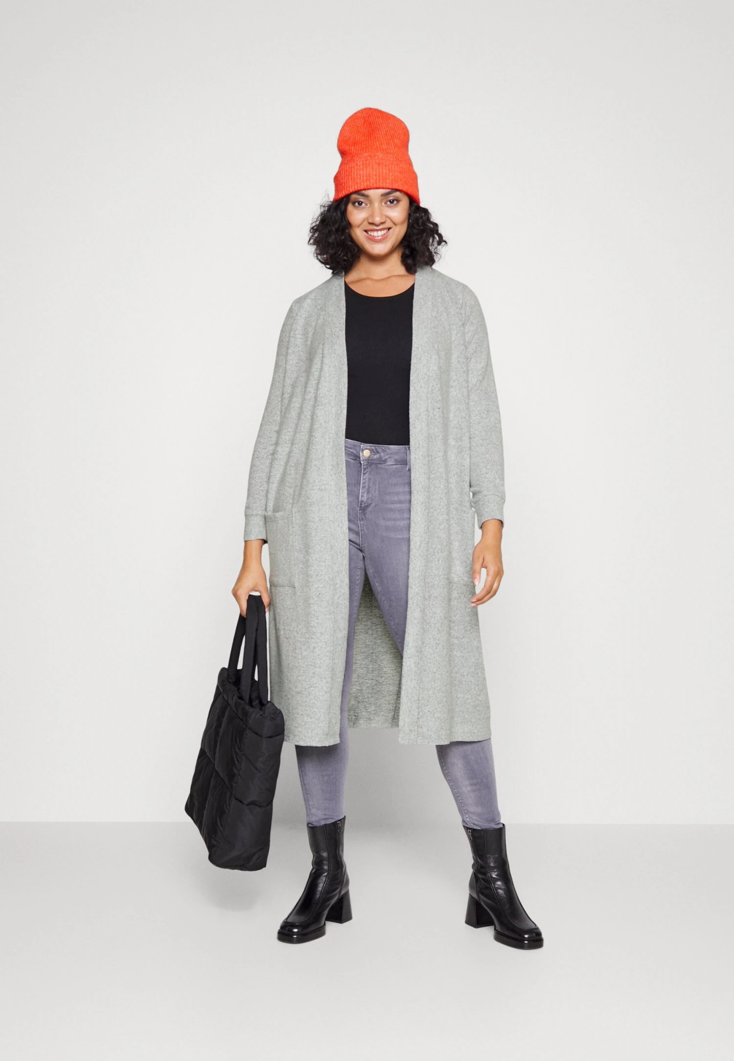 Nmcity Long Cardigan Curve – Vest – Mottled Grey