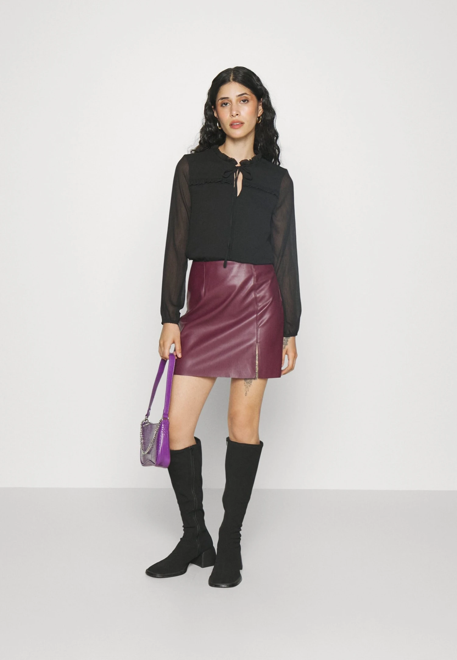 Noisy May Petite Nmclara Penny Pu Hw Slit Skirt Petite – Leren Rok – Windsor Wine